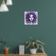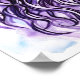 This whimsical poster features a vibrant print of a young woman’s face close up, finished in a purple white blue watercolor print.