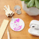 Cute cat with pink heart balloon saying 'Purr-fect MOM' .