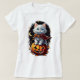 Celebrate Halloween with whimsy in this charming t-shirt design. A cute cat, donning an adorable cape, perches elegantly atop a meticulously carved pumpkin. Its mischievous gaze hints at an enchanting secret, while the pumpkin's flickering light adds an air of mystique. This design captures the essence of Halloween's playful spirit, blending feline charm with the magic of pumpkin-carving traditions.