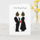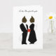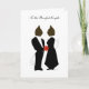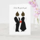 Our romantic greeting card features an illustration of a silhouette of two cats in formal evening dress. The tom cat is offering a red rose to his purrfect love. The inside of the card reads "You're purrfect together. Wishing you happiness furrever and ever."