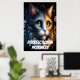 A mesmerizing painting of a cat with striking blue eyes, gazing directly at the viewer. The cats fur is depicted in rich tones, showcasing its elegant and regal appearance. Purrfection in progress