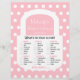 Looking for a purse bridal shower party game which is not like all the others? Well, this one is for you! This purse bridal shower game features an actual purse design as the game board. The purse has the words "What's in your purse?" on it and the bridal shower attendees can check off what is in your purse and add up the total points -- all inside the purse. The white purse appears on a pink and white polka dot background. You can even customize the design with the name of the bride and the bridal shower date. This is a fun twist to the purse bridal shower party game! Copyright henishouseofpaper