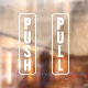 White transparent push and pull door sticker for enter and exit doors. Vertical / portrait orientation. Great for any business / shop / store / restaurant. Use for easily flow of customer traffic.