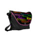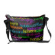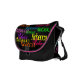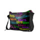Add your name or word all over this awesome bright and colourful messenger book bag, with black background and neon coloured text in different fonts. A Stylish way to mark your property and show who's in charge! Great for a teen girl's birthday gift, for a college student or other fashionable girl who is "all about me". Chic and sassy, with your name personalized custom made for you!