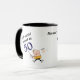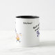 This mug makes a cute gift for anyone who is turning the big 50. It features your custom text in blue and black stylized text. Currently it says "Still puttin' around at 50". A cartoon golfer is taking a whack at his ball beneath the text. The image and text are on each side, with your name or other custom text in the middle. Funny! *This design uses image © Graphics Factory.com*