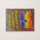Ce dessin animé urbain et graffiti inspiré du puzzle d'anniversaire comprend un grand nombre de "27" avec un dégradé coloré du spectre arc-en-ciel inspiré motif, ainsi que le message "Happy 27th Birthday," et un nom personnalisé. L'arrière - plan dispose d'un motif mural en brique. Un puzzle coloré et personnalisable comme celui-ci pourrait être donné pour célébrer le vingt-septième anniversaire de quelqu’un. [~Z0000545]