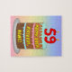Cette conception amusante et joyeuse de puzzle d'anniversaire comprend une représentation de style dessin animé d'un gâteau d'anniversaire à trois niveaux avec des bougies en forme de chiffre sur le dessus montrant l'âge "59", avec le message "HAPPY 59TH BIRTHDAY,", et un nom de destinataire personnalisable. L'arrière - plan dispose d'un motif multicolore pastel en arc-en-ciel inspiré du spectre dégradé. Un puzzle d’anniversaire coloré et modifiable comme celui-ci pourrait être donné pour célébrer le cinquante-neuvième anniversaire de quelqu’un. [~Z0000621]