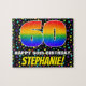 Cette puzzle d'anniversaire joyeuse et optimisée design de puzzle dispose d'un grand nombre de "60" ayant un motif multicolore du spectre arc-en-ciel inspiré de dégradé. Il contient également le message "HAPPY 60th BIRTHDAY", ainsi qu'un nom de destinataire modifiable. L'arrière - plan a un motif joyeux et coloré de formes étoiles. Un casse-tête amusant et modifiable comme celui-ci pourrait être une façon amusante d'envoyer un message d'anniversaire à quelqu'un qui célèbre son soixantième anniversaire. [~Z0000607]