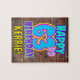 Cette conception amusante de puzzle sur le thème de l'anniversaire comporte le message "HAPPY 63RD BIRTHDAY", ayant une apparence vibrante, colorée, graffiti et art urbain de rue inspiré, en plus d'un nom de destinataire modifiable. L'arrière - plan est décoré d'un motif d'inspiration murale en brique. Un puzzle amusant et customisé comme celui-ci pourrait être une façon amusante d'envoyer des voeux d'anniversaire à quelqu'un qui célèbre son soixante-troisième anniversaire. [~Z0000532]