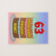 ce dessin de puzzle à thème d'anniversaire, optimisé et amusant, présente une représentation en bande dessinée d'un gâteau d'anniversaire à trois niveaux, avec des bougies en forme de chiffres sur le dessus, portant le numéro "63", ainsi que le message "HAPPY 63RD BIRTHDAY", et un nom de destinataire personnalisable. L'arrière - plan dispose d'un motif multicolore pastel en arc-en-ciel inspiré du spectre dégradé. Un puzzle d'anniversaire gai et customisé comme celui-ci pourrait être une façon amusante d'envoyer des voeux d'anniversaire à quelqu'un qui célèbre son soixante-troisième anniversaire. [~Z0000621]