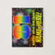 Cette conception de puzzle d'anniversaire passionnante et audacieuse comprend un grand nombre de "81" avec un motif multicolore inspiré du spectre arc-en-ciel, ainsi que le message "HAPPY 81st BIRTHDAY,", et un nom de destinataire personnalisé. L'arrière - plan présente un motif joyeux et multicolore, inspiré par les feux d'artifice des célébrations. Un casse-tête d'anniversaire customisé et accrocheur comme celui-ci pourrait être une façon amusante d'envoyer des voeux d'anniversaire à quelqu'un qui fête son quatre-vingt-et-unième anniversaire. [~Z0000605]