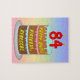 Ce puzzle à thème d'anniversaire joyeux et joyeux présente une représentation de dessin animé d'un gâteau d'anniversaire à trois niveaux avec des bougies en forme de chiffre sur le dessus montrant l'âge "84", avec le message "HAPPY 84TH BIRTHDAY," et un nom de destinataire personnalisé. L'arrière - plan a un motif multicolore pastel en arc-en-ciel inspiré du spectre dégradé. Un casse-tête amusant et personnalisé comme celui-ci pourrait être utilisé pour célébrer le quatre-vingt-quatrième anniversaire de quelqu’un. [~Z0000621]
