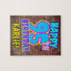 Cette conception amusante de puzzle thématique d'anniversaire comporte le message "HAPPY 95TH BANTHDAY", ayant une apparence colorée, vibrante, urbaine et inspirée du graffiti, en plus d'un nom de destinataire personnalisable. L'arrière - plan dispose d'un motif inspiré de l'aspect d'un mur en brique. Un puzzle d'anniversaire amusant et personnalisable comme celui-ci pourrait être une façon amusante de livrer des voeux d'anniversaire à quelqu'un qui célèbre son quatre-vingt-quinzième anniversaire. [~Z0000532]