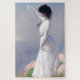 Ce dessin présente un tableau de l'artiste impressionniste américain Joseph DeCamp (1858-1923). Il représente une femme debout sur une falaise côtière alors qu'elle agite à un navire éloigné avec son mouchoir. Son mari peut quitter la marine ou aller travailler à l'étranger dans des pays étrangers. La dame est élégamment vêtue d'une longue robe blanche et d'un grand casquette noir. Elle est debout sur une parcelle d'herbe au bord de la falaise alors qu'elle agite le navire. La mer bleu clair se voit en dessous d'elle. L'oeuvre originale a été peinte par Joseph DeCamp entre 1900 et 1902.
