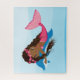 Ce puzzle de sirène est dans les couleurs rose et bleu. Le puzzle est conçu avec une mignonne sirène afro-américaine avec queue de poisson rose, bouclés, cheveux longs et dauphin. Ce puzzle de sirène est un cadeau idéal pour les filles pour toute sorte de célébration.