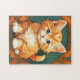 Puzzle avec un chat orange dans le style d'Alphonse Mucha! Cette adorable petite chatte aux yeux verts est encadrée de feuilles d'automne. Un cadeau merveilleux pour les amoureux de les chats et les collectionneurs Art Nouveau !