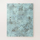 Une base d'aqua souple et poussiéreuse est superposée avec une myriade d'éléments graphiques en gris fusain, créant profondeur et intérêt visuel.