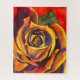 Belle peinture d'art originale de Rose d'or en rouge, orange et or. Aquarelle fine art.