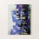 Architecture Abstraite Le puzzle City Scape Blues présente un design abstrait de bâtiments modernes avec beaucoup d'angles contre un arrière - plan avec des lignes plus verticales et horizontales. Les tons bleus sont pour la plupart pourpres, jaunes et verts.