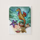 Une vision fantastique d'une femelle avec la natation débordante de cheveux de ressac sous l'océan avec un hippocampe pourpre et orange espiègle, une étoile de mer violette bleue vive, trois coquilles modifiées la tonalité naturelles de mer accentuées avec lumineux, se soulevant bouillonne.