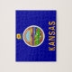 Mettez-vous au défi avec ce puzzle engageant avec le drapeau du Kansas ! Conçu avec une attention minutieuse aux détails, ce puzzle est plus qu'une simple activité récréative, c'est une célébration du patrimoine du Kansas et de la fierté de l'État. Le design présente fièrement le drapeau emblématique du Kansas, avec un champ bleu foncé avec le sceau d'état centré sur l'or et le buff. Le phoque comprend des éléments tels qu'un paysage avec un soleil levant, une rivière, un bateau à vapeur et un bison de chasse amérindien, le tout entouré de 34 étoiles représentant le Kansas comme le 34e état à rejoindre l'Union. Que vous le résolviez seul ou en famille ou entre amis, ce puzzle ajoute une touche authentique de Kansan à votre temps libre. Fabriqué à partir de matériaux de haute qualité, ce puzzle du Kansas est durable et attrayant visuellement, assurant des heures de plaisir pendant que vous assemblez ce symbole culturel. Son design dynamique et sa construction robuste en font le moyen idéal pour express votre admiration pour le Kansas d'une manière engageante et significative.