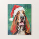 Design de Noël coloré et joyeux avec un Basset Hound portant un chapeau de Père Noël.