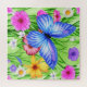 Beau Papillon Bleu aux Fleurs Aquarelle, ce design présente un beau papillon bleu aux fleurs de printemps.