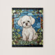 Grand puzzle avec un chien Bichon Frise dans le style d'un vitrail.