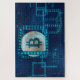 Bitcoin Cryptomonnaie Blockchain Blue Silver Jigsaw Puzzle Puzzle dispose d'un Bitcoin doré verrouillé dans une blockchain. Un cadeau parfait pour les amateurs de monnaie crypto.