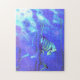Jigsaw puzzle avec mon oeuvre numérique, une scène sous-marine bleue avec un poisson-ange solitaire nageant à travers les algues.