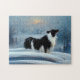 Bordure Collie en hiver Snowy Landscape Puzzle. Calme paysage de neige d'hiver avec une belle collie frontière noire et blanche. Puzzle pour un propriétaire de collie de bordure.