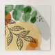 Design botanique avec des couleurs vertes, oranges et beiges et des éléments d'aquarelle.