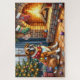 Puzzle Boxer Sitting by Fireplace with Christmas Lights