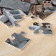Cette conception de puzzle présente une photo de décombres de démolition qui contient des briques, des blocs de béton et d'autres débris de construction.