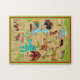 Carte amusante et illustrée du parc national de Yellowstone avec une quantité d'animaux! Il s'agit d'une ancienne carte postale réutilisée sur un puzzle 11x14.