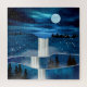 Scène paysagère Abstraite d'une cascade avec une lune, des oiseaux, le ciel nocturne et les étoiles.
