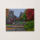 Station de train d'Issaquah - est une copie d'art de mur de photographie de couleur des voies de train fonctionnant devant l'Issaquah, station de train de Washington. J'ai pensé que cette copie d'art du mien ferait un grand puzzle. L'arrangement est Issaquah, Washington pendant les changements de couleur de chute. La quantité d'arbres dans toute cette banlieue orientale de Seattle qui tournent des couleurs vibrantes pendant l'automne est spectaculaire. Le brillant de cet affichage d'automne devient le point focal cette époque avec les pins naturels qui couvrent les pentes de montagne tout près comme contexte vert régulier.