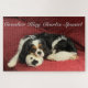 C'est un puzzle, avec une photo originale du plus beau Tricolor Cavalier King Charles Spaniel, reposant sa tête sur son jouet préféré.