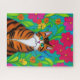 Puzzle Chat à rayures orangées Whimsical avec fleurs rose