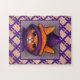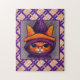 Puzzle Chat orange avec Casquette de sorcière violette De