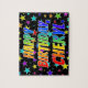 Ce puzzle dynamique, animé, sur le thème de l'anniversaire, présente le message "HAPPY BANTHDAY, CHERYL" avec des personnages ayant un motif dégradé coloré inspiré du spectre arc-en-ciel, ainsi qu'un passionnant motif arrière - plan de champ étoilé. Un puzzle aussi excitant pourrait être une façon amusante d'envoyer des salutations d'anniversaire à quelqu'un nommé Cheryl. [~Z0000468]