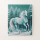 Puzzle Cheval d'argent vert dans la forêt enchantée