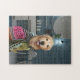 Ajoutez un peu d'amusement à votre jour avec ce puzzle mignon ! Les caractéristiques de conception une photographie d'un chien de sourire de golden retriever dans le bain, accomplissent la serviette et le casquette se baignant.