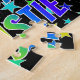 Ce puzzle amusant, vibrant, sur le thème de l'anniversaire, présente le message "HAPPY BANTHDAY, CHRISTIE" avec les personnages ayant un motif dégradé coloré inspiré du spectre arc-en-ciel, en plus d'un motif arrière - plan de terrain étoilé animé. Un puzzle aussi excitant pourrait être utilisé pour envoyer des salutations d'anniversaire à quelqu'un nommé Christie. [~Z0000468]