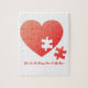 Puzzle coeur avec une pièce manquante sur le côté. Citation disant, "Vous êtes la pièce manquante de mon coeur."