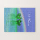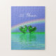 Une idée cadeau amusante, ce puzzle a une belle image pittoresque 3d de coeurs émeraude flottant sur l'eau sous un arc-en-ciel avec texte personnalisable.