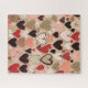 Une multitude de formes cardiaques, de tailles et de couleurs variées, sont disséminées dans un arrière - plan beige, créant un motif plein de chaleur et de charme. Les coeurs sont dépeints dans les tons rouge, rose, blanc et vert, donnant à l'image une sensation ludique et romantique.
