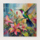 Colorful modern art painting of a hummingbird surrounded by tropical flowers, printed on high-quality posters, greeting cards, and unique gifts. This vibrant generative artwork adds a lively, artistic touch to any space or occasion.