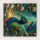 Le paon majestueux, avec ses plumes de queue resplendissantes, est le joyau de cette couronne verdoyante, ses bleus et ses verts chatoyants d'une lueur d'un autre monde. Le feuillage environnant, tapisserie de plantes et de fleurs exotiques, est animé par le mouvement de colibris délicats et le doux murmure de feuilles.