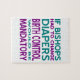 Les mots libéraux, progressistes, démocrates et/ou pro-Obama se lisaient comme suit : "Si les évêques devaient changer le contrôle des couches, la contraception serait obligatoire." Écriture turquoise et violette. Apx. carré 10x10.